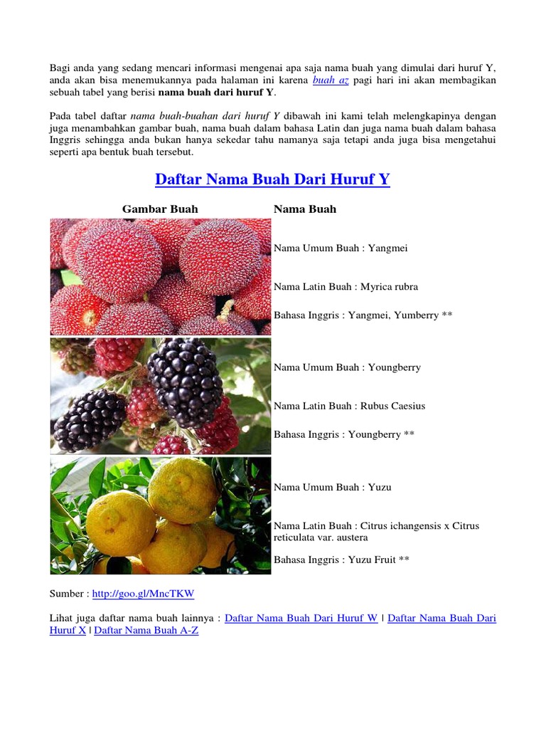 People are now accustomed to using the net in gadgets to view video and image. Selain itu buah juga bisa membuat kenyang sekaligus dapat. Daftar Nama Buah Dari Huruf Y.