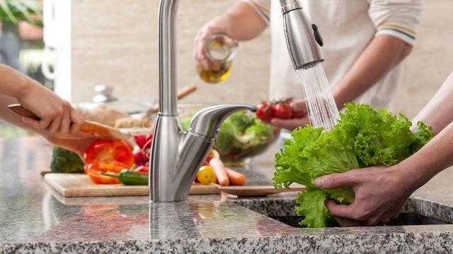 Cuci tangan dan alat masak Sebelum mencuci buah dan sayuran sebaiknya tangan dan alat masak dicuci terlebih dahulu dengan bersih agar terhindar dari cemaran bakteri dari tangan dan alat masak. Buah dan sayur juga bisa menjadi cara seseorang menjaga berat badan mereka. Cara menghilangkan residu pestisida pada buah dan sayur adalah dengan merendam buah dan sayur di dalam air yang sudah ditetesi sabun selama beberapa menit.